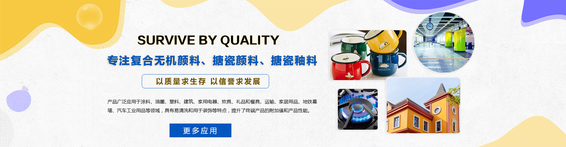 主要適用于日用搪瓷、工業(yè)搪瓷、搪瓷標牌、搪瓷貼花紙、搪玻璃、建筑琺瑯板、日用玻璃、粉末涂料等行業(yè)。產(chǎn)品性能好、品種齊全......